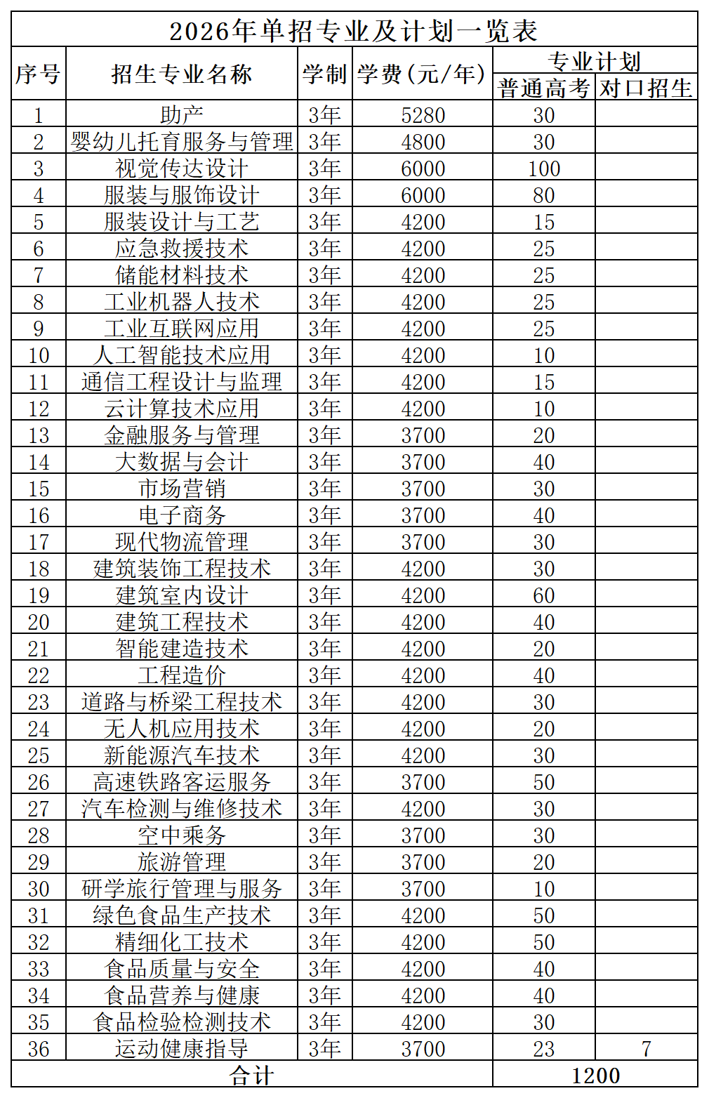 鹤壁职业技术学院2026年单独考试招生计划